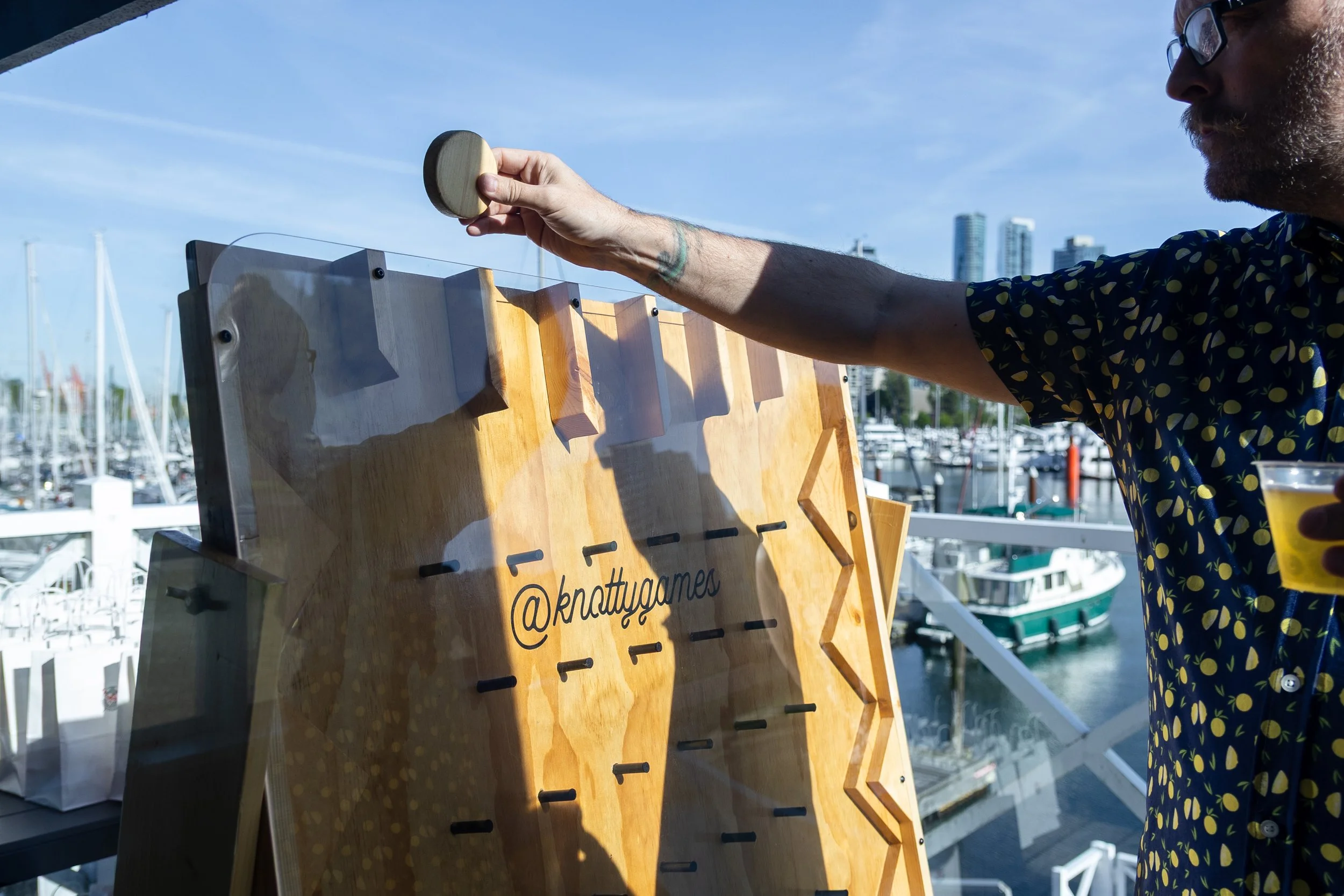 Plinko set up on the patio at the gorgeous Vancouver Rowing Club.