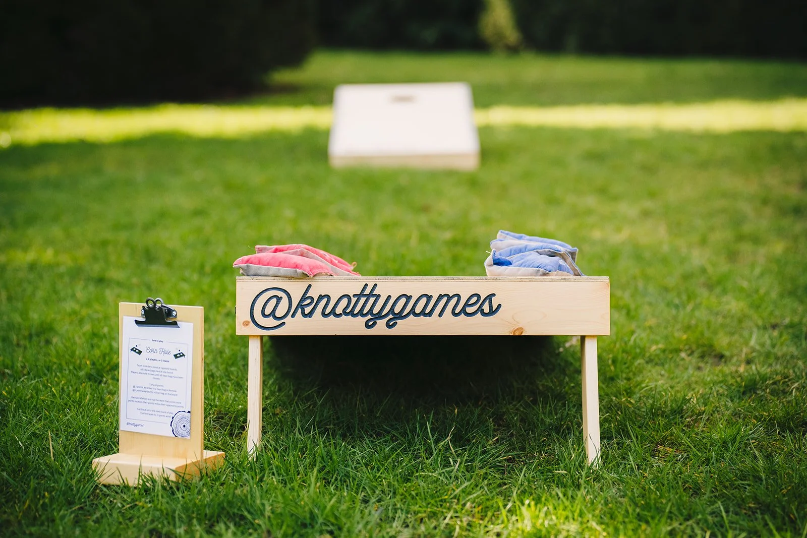 Includes two custom corn hole boards, and 8 bean bags in your choice of colour